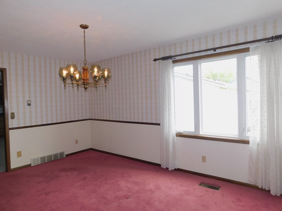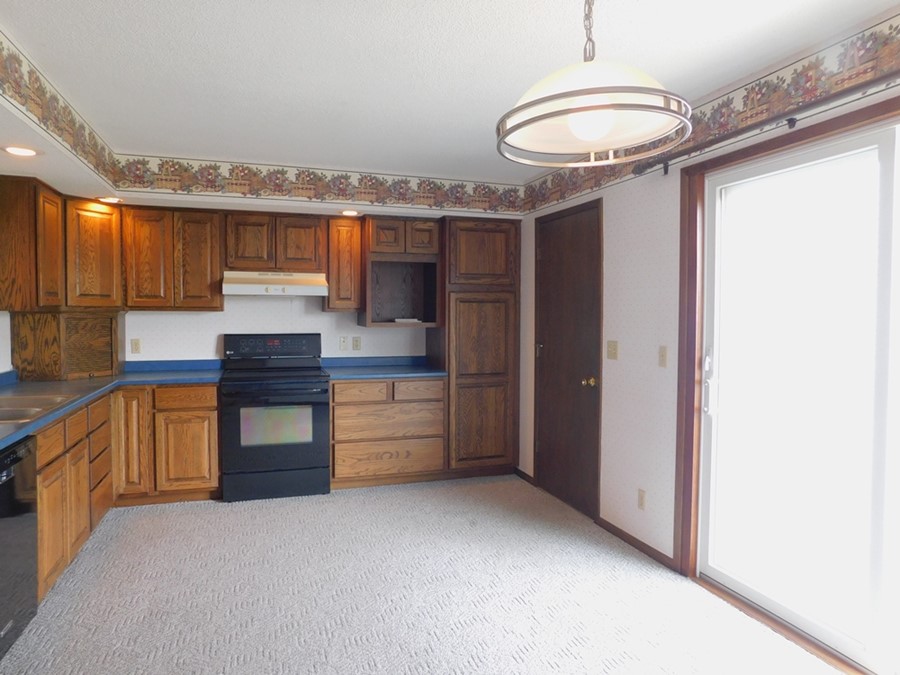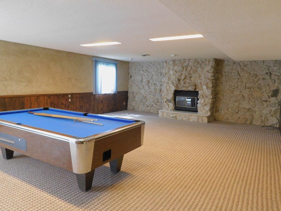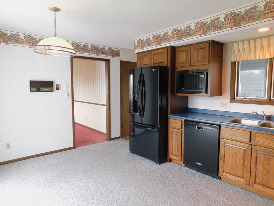 This home is waiting for a new family to make it their own. With some cosmetic updates it could be just the new home for you. From the entry, enter into the living room with cozy fireplace and large picture window with a view of the field and countryside behind. Kitchen with appliances, pull-out drawers and appliance garage along with bright dining spot by the patio doors, which leads to a handy deck for grilling and enjoying. Formal dining room, great for those holiday dinners. Spacious master bedroom with private bath and walk-in closet. 2 additional bedrooms and baths round out the main floor. Speaking of entertaining space, the lower level family room is just the thing. Large room w/grand rock fireplace, room enough for the pool table (it stays!) and a wet bar and patio door to the patio and yard. Also huge non-conforming bedroom with closet and easy spot to put an egress window. Laundry room w/sink, counter and bathroom for convenience. 2 storage rooms, updated windows, furnace, central air, large 2 car garage w/extra parking, great location and pretty yard/view are just a few of the great things about this well kept home.