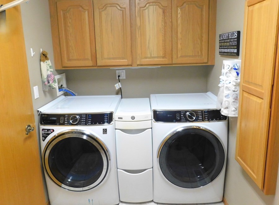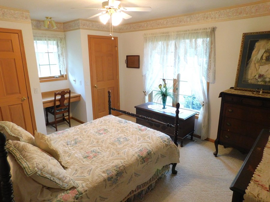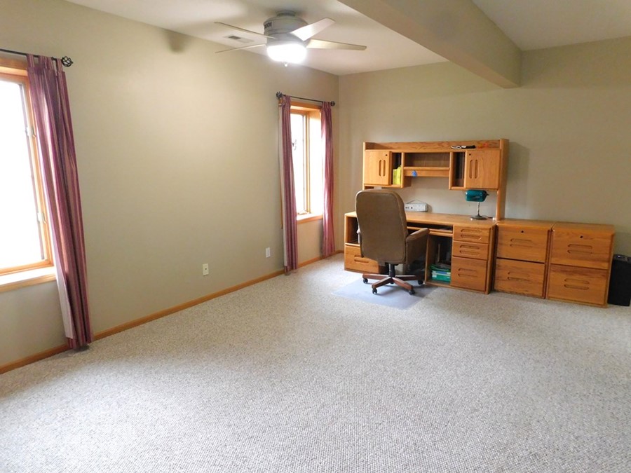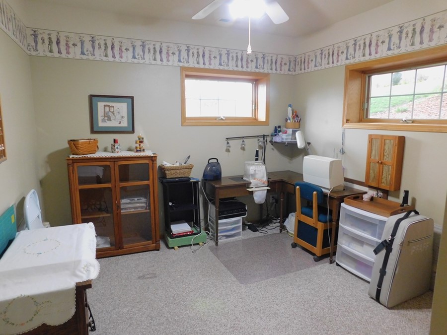 Custom built home with oh so many great features. Enter into the open space where you can see right through to the back. To the left is the formal dining room, which could also convert to a convenient home office. Straight through is the large living room with fireplace which opens to the dining area and custom kitchen with beautiful cabinets, granite counters, desk area and appliances and doors to the deck. Off by itself is the main suite, with deck access, private bath and walk-in closet. 2 additional bedrooms and bath on opposite side of house. Handy laundry and ½ bath right off the 2 car attached garage. Down the open stairway is a spacious, light family room with rec area and office area that walks out to a patio. 2 more potential bedrooms and full bath. Also a huge storage room with 2 furnaces & 2 water heaters. Also a 3rd garage for extras. Beautiful yard with sprinkler system and quiet location.