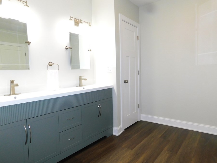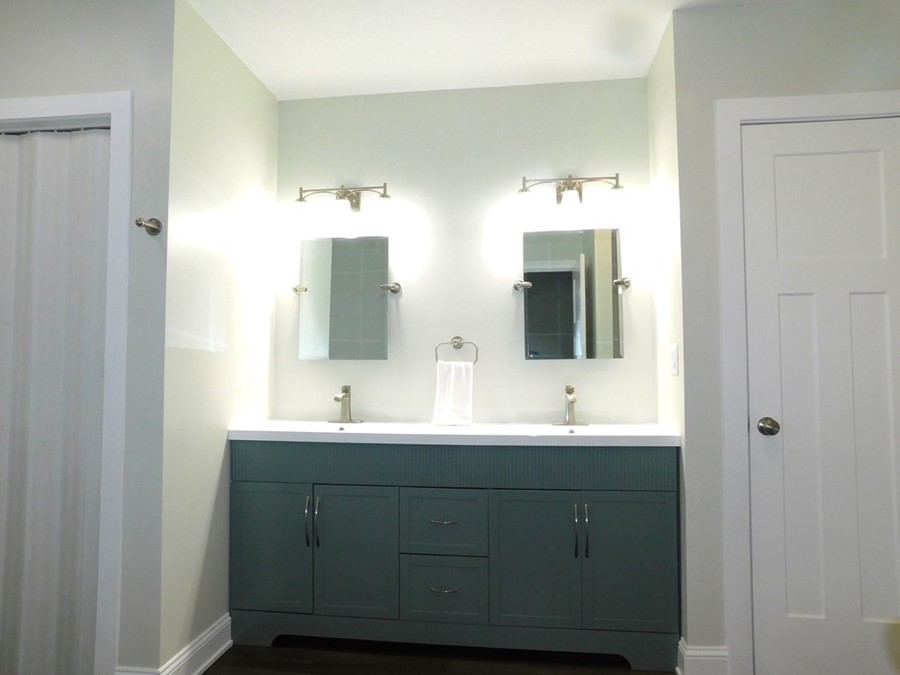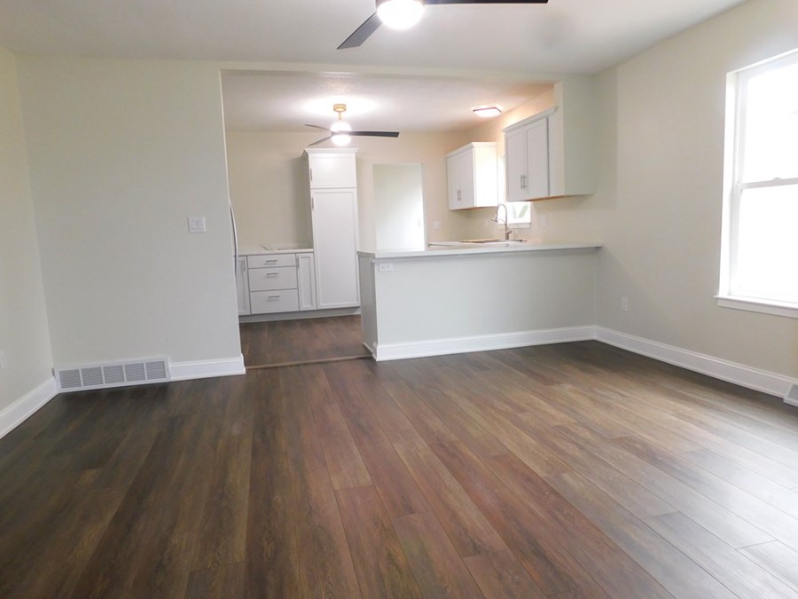 • Kitchen: New white cabinets, stove, frig, eating bar